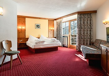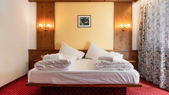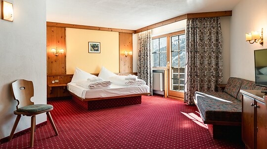 Our double rooms with panoramic window, approximately 20 m² in size, offer cozy comfort combined with stunning views – depending on location, either of the Schnals Valley Glacier or the charming village of Kurzras.