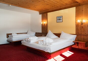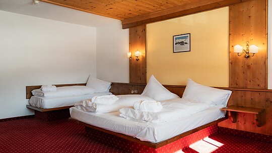 Our comfortably furnished triple rooms can accommodate up to four people (max. 5 people) and are ideal for families. It features a spacious double bed and two additional single bed - perfect for a restful night's sleep.